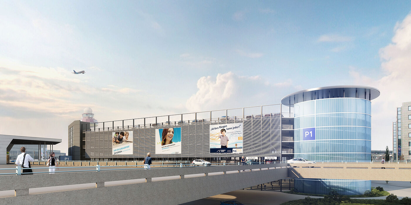 Large-format visibility in a central location: Discover our exclusive advertising opportunities at Car Park 1 - directly in front of Terminals A and B at Hannover Airport.