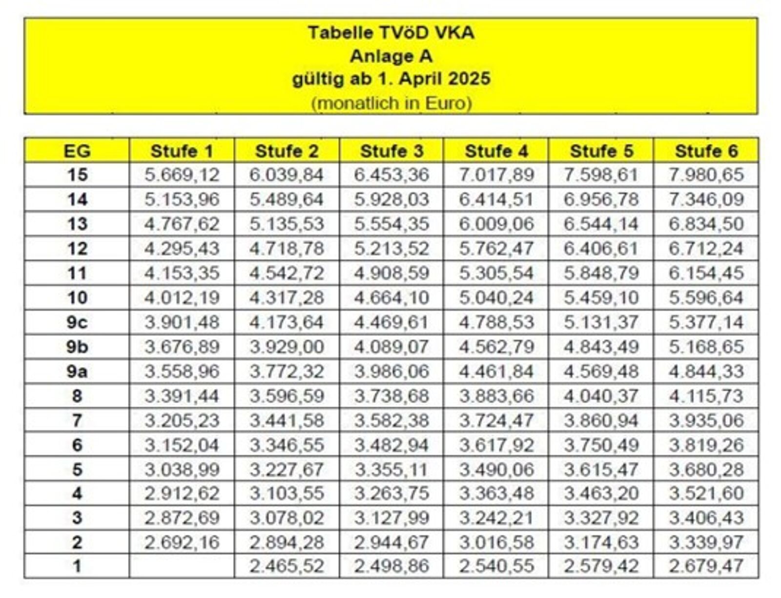 Die Grundlage Ihrer Vergütung bildet der Tarifvertrag des öffentlichen Dienstes - Besonderer Teil Flughäfen VKA (TVöD BT-F) und deren Anlage 1 - die Entgeltordnung VKA.